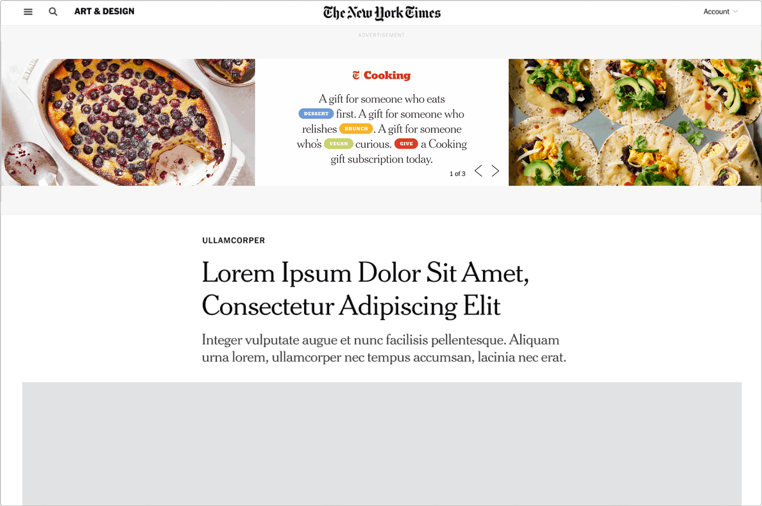 The campaign ran in all New York Times owned channels; on our website, in the news paper, and in emails. The campaign also included the designing and development of a custom gifting-specific landing page where users could purchase gift subscriptions for their loved-ones and friends.